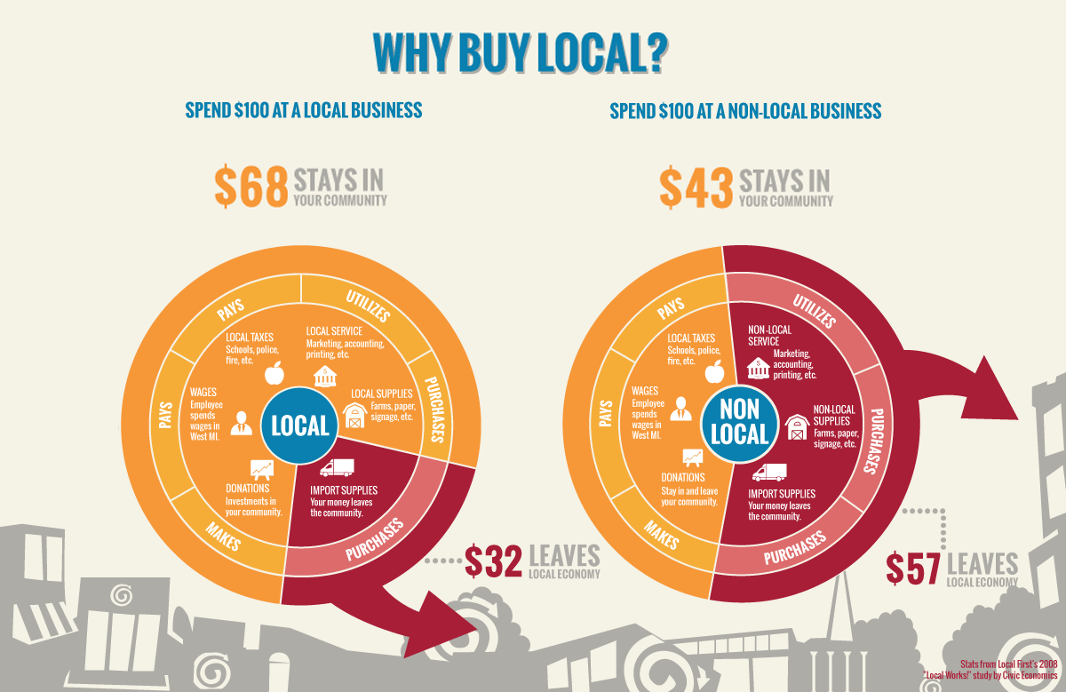 When you shop local it makes a difference in our community. Nearly 70% of the money you spend at a locally owned business stays right here in Mississippi, while only about 40% of the money spent at national chains stays here.